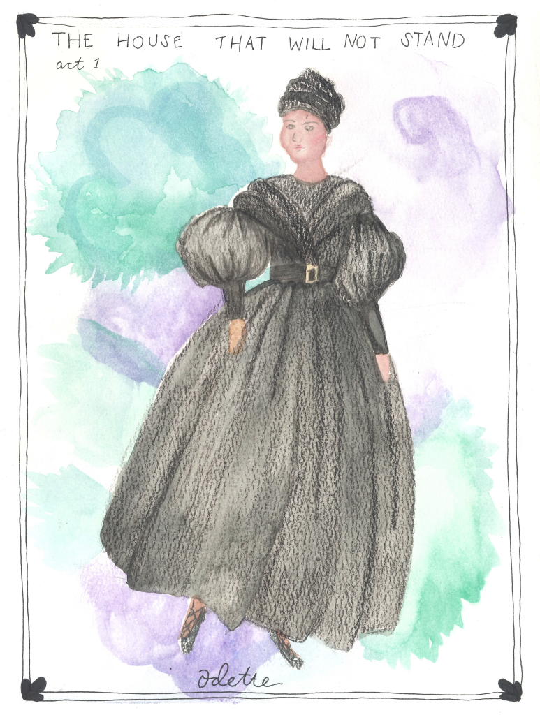 A play written by Marcus Gardley, set in Louisiana in 1836. It was a great play to practice designing historical costumes. I really enjoyed learning about historical garments and their variations among class, race, and situation. In this play, the main characters are wealthy creole women who are in mourning.